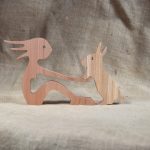 Nyuszival játszó lány fafigura. Nyuszibarátoknak kötelező kiegészítő a polcra.