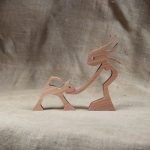 Lányt és kiskutyát ábrázoló, fából készült figura.