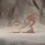 Lányt és kiskutyát ábrázoló, fából készült figura.