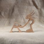 Lányt és kiskutyát ábrázoló, fából készült figura.